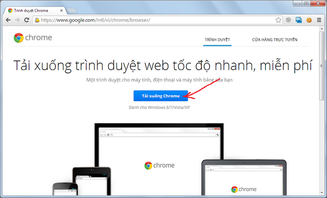 Chạy trình duyệt bất kỳ trên máy, Internet Explorer chẳng hạn. Truy cập vào địa chỉ sau đây: http://www.google.com/chrome/