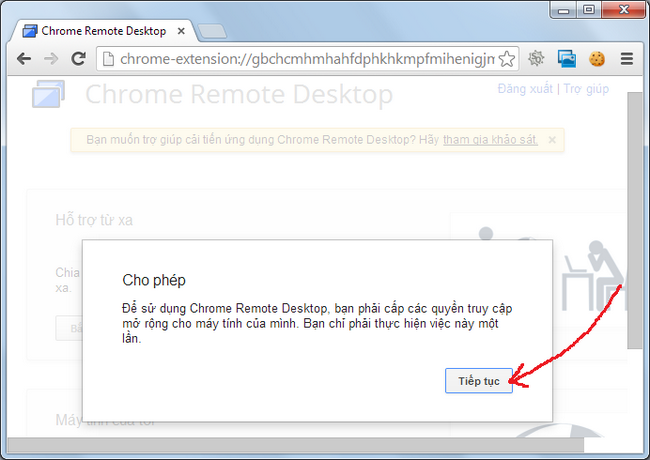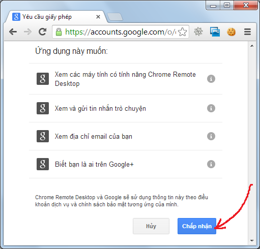 Nhấn "Chấp nhận" để cho phép Chrome Remote Desktop hoạt động.
